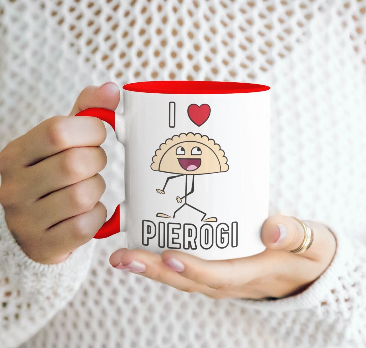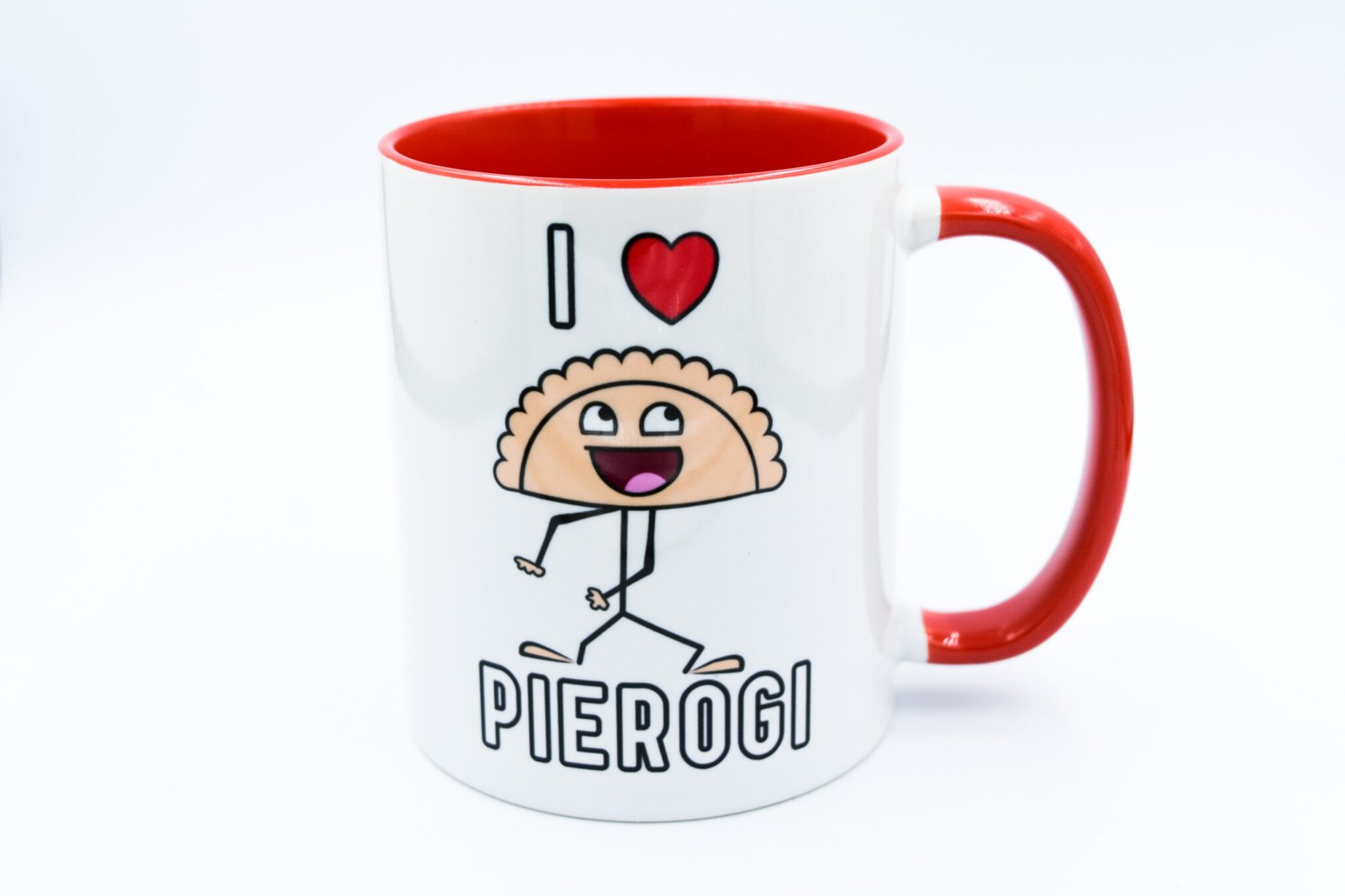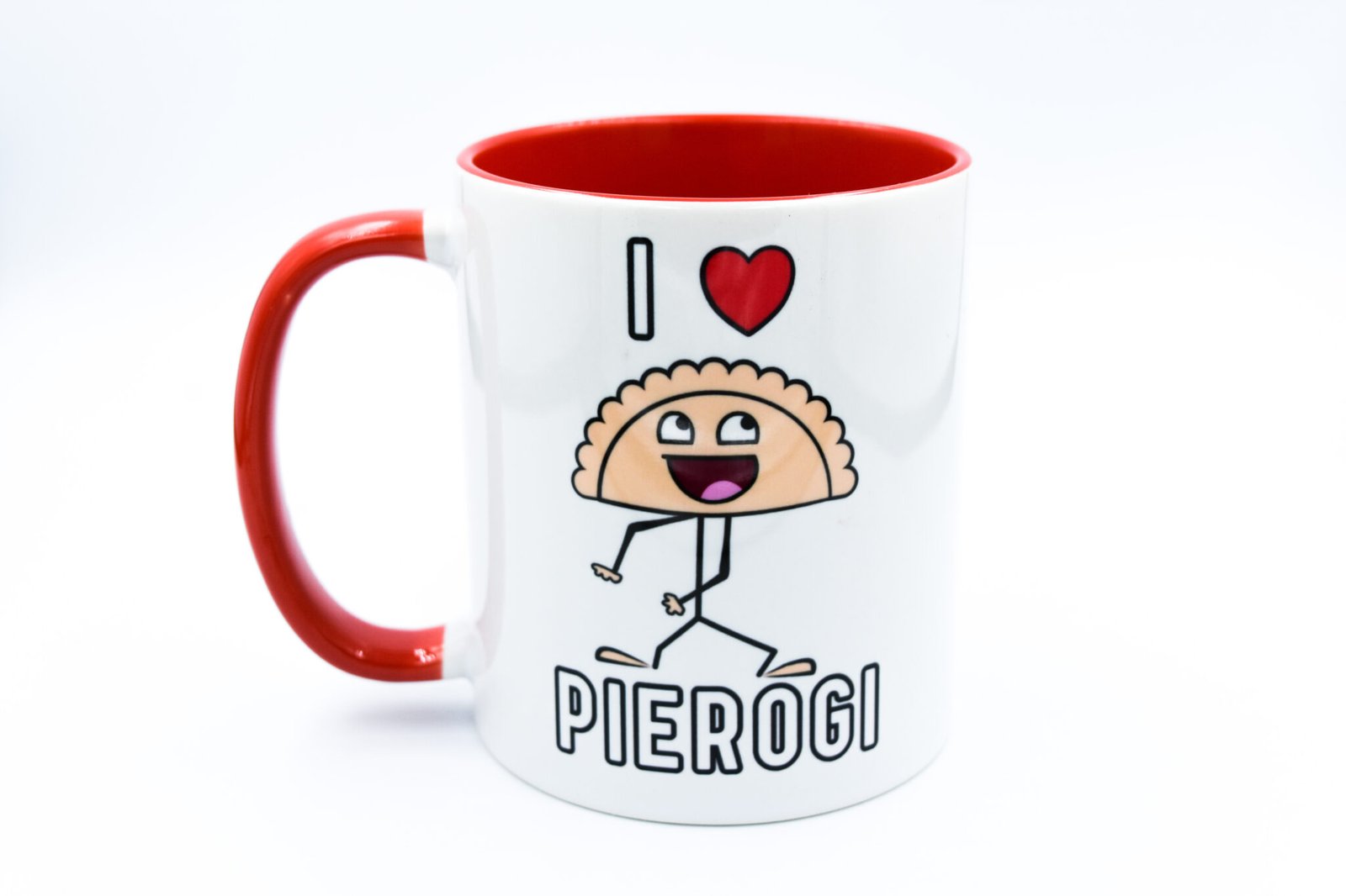 Kubek z napisem „I love pierogi„. Idealny dla wszystkich smakoszy pierogów.